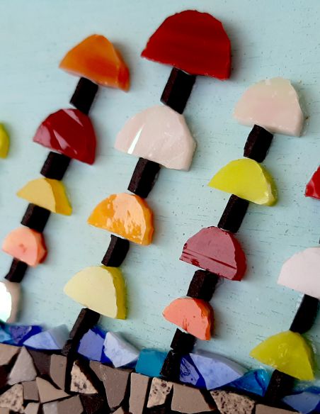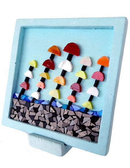 Το ψηφιδωτό καδράκι είναι κατασκευασμένο με την τεχνική της άμεσης ψηφοθέτησης σε βάση ρητινούχου γύψου και συμπεριλαμβάνει μια βάση στήριξης από το ίδιο υλικό. Οι ψηφίδες που χρησιμοποιούνται είναι βιτρώ και κεραμικές.