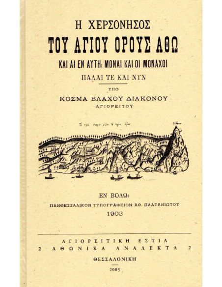 Φωτοαναστατική ανατύπωση της ιστορικής πραγματείας του αγιορείτη Κοσμά Βλάχου, η οποία εκδόθηκε το 1903 στον Βόλο. Μια εξαιρετικά εμβριθής και περιεκτική εργασία από τον συγγραφέα, που διετέλεσε και επίτροπος του Αγίου Όρους στη Θεσσαλονίκη. Στο τέλος του βιβλίου έχει προστεθεί εύχρηστο ευρετήριο κύριων ονομάτων. Σειρά «Αθωνικά Ανάλεκτα» 2.