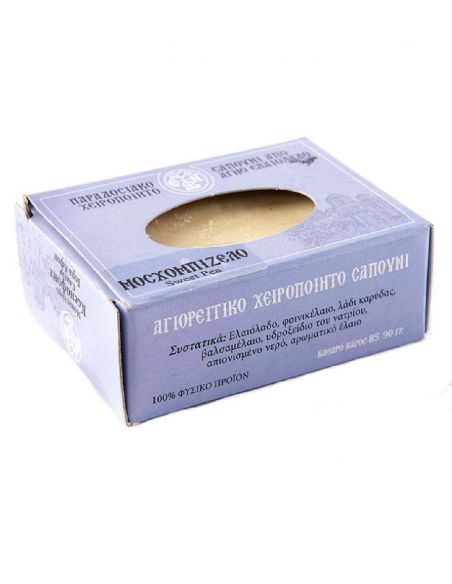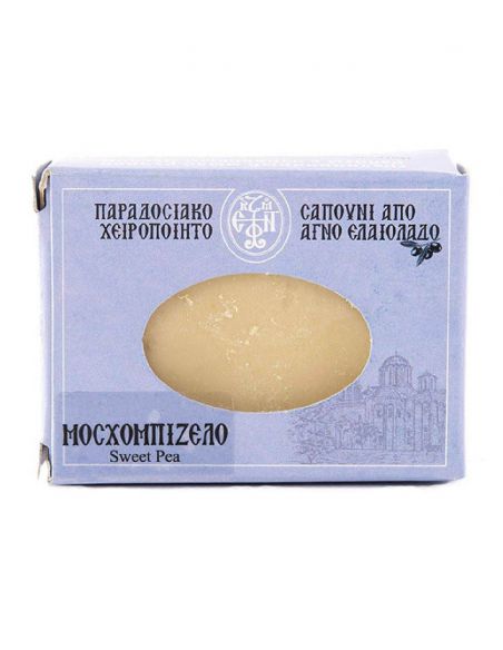 Ιερά Μονή ΞενοφώντοςΠαραδοσιακό χειροποίητο σαπούνι «ψυχρής» μεθόδου και μακράς ωρίμανσης από αγνό ελαιόλαδο με άρωμα μοσχομπίζελο.